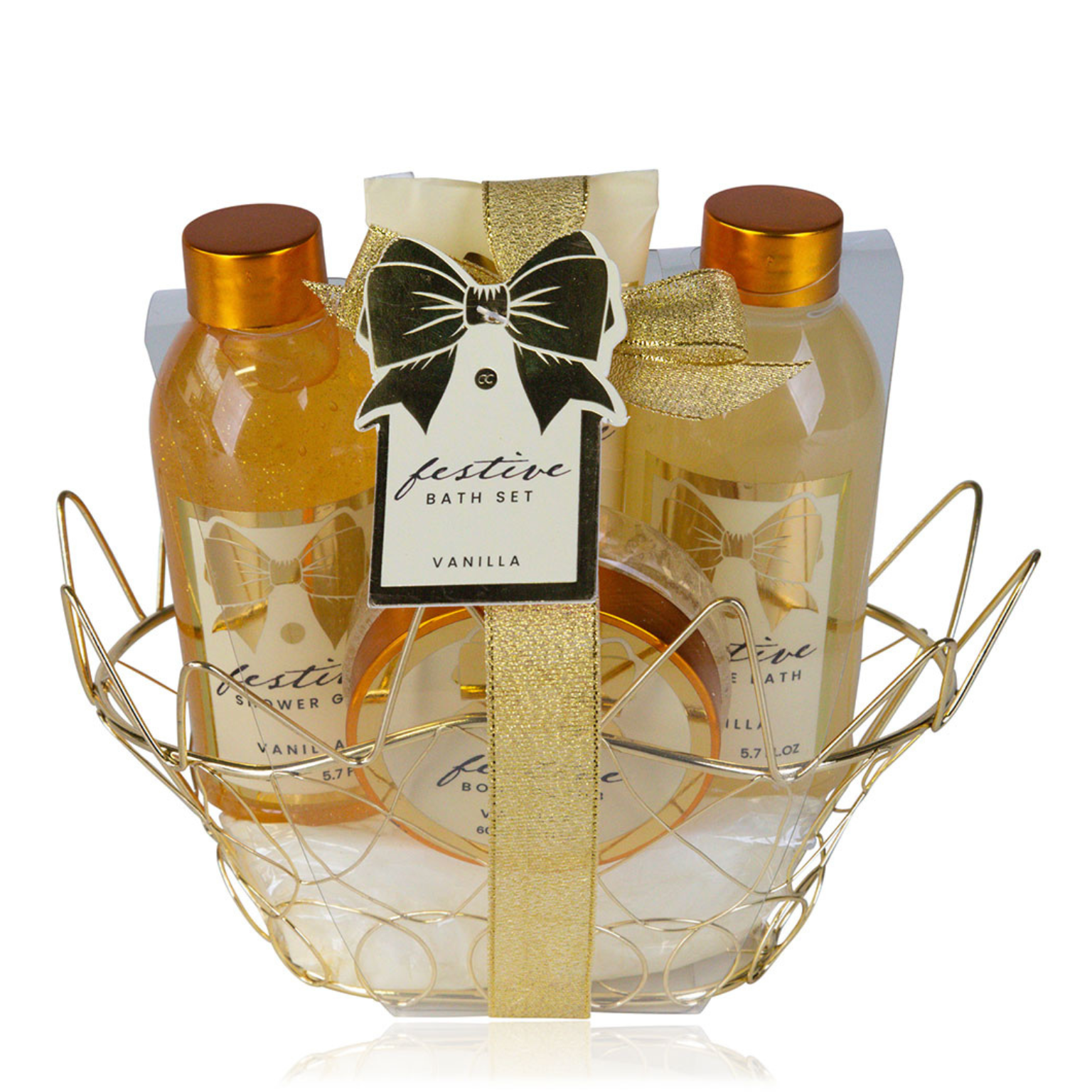 Badeset FESTIVE in ovalem Drahtkorb